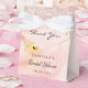 Un gran rosa pálido abstracto pintado con acuarela como fondo decorado con una abeja feliz sonriente y gotas. Con el texto: Despedida de soltera y Gracias escrito con un estilo de letra manuscrita moderna en negro. Personaliza con el nombre de la novia abeja y una fecha.