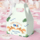 Gracioso dinosaurio caja de favores de la segunda fiesta de cumpleaños con esquema de color azul verde y naranja y tema de safari. Personalízalo con los detalles de tu evento. Diseño unisex para un niño o chica.