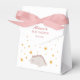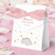 Dinosaurio rosa Twinkle Stars Baby Girl Shower Favor Box - Caja de favores adorable y adorable con un dinosaurio rosa rodeado de estrellas. Todos los textos están preorganizados para que puedas personalizarlos fácil y rápidamente con tus detalles.