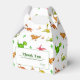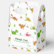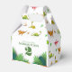 Haga especial el cumpleaños de su hijo con nuestros amigos de Dino-Inspired o las cajas de favores de la fiesta de cumpleaños. Este bonito y adorable diseño de temática blanca y verde presenta fuentes atrevidas en un vibrante y personalizado patrón de dinosaurios que tiene dinos, volcanes y arbustos más vegetación de la jungla. Se puede personalizar con el nombre, la edad y un mensaje corto para los amantes del dino. El diseño de esta caja de favores con temática de jungla al aire libre es la adición perfecta a la fiesta de cumpleaños de tu pequeño aventurero.
