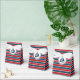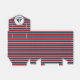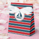 Diseño náutico con decoración de velero en forma redonda con estrellas en fondo rayado rojo, azul y blanco