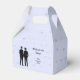 Una elegante caja de favores de boda clásica con dos novios. Las siluetas le dan un toque romántico a este bonito rótulo de la caja de favores. Esta escena minimalista es perfecta para su boda romántico moderno. Este aspecto irá bien en cualquier estación boda, primavera, verano, otoño o invierno. Ideal para un boda moderno y perfecto para un boda clásico.