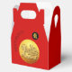 Composición con papel tradicional chino dorado cortado de un Dragón en un círculo dorado + pequeñas letras modernas para el Año del Dragón 2024 y símbolo de un dragón chino en un pequeño círculo negro. Diseño en la caja de preferencia gable + Nombre comercial y dirección al personalizar con fondo rojo. Disponible en cubo, carpa y cajas de favores de retiro. Tarjeta de felicitación coincidente, postal de vacaciones, invitación y más pronto. Perfecto para el Año Nuevo Chino del Dragón 2024 o cumpleaños (personas nacidas en el Año Dragón).