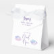 Caja de bienvenida con ducha para bebés de ensueño con ilustracion acuático de nubes rosa y violeta. El texto dice "estamos en la nube nueve".