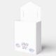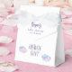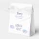 Caja de bienvenida con ducha para bebés de ensueño con ilustracion acuático de nubes rosa y violeta. El texto dice "enviado por el cielo".