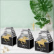 Las cajas de favores con forma de pináculo con tema de Derby para ducha de boda presentan un caballo de carreras con brillo dorado falso sobre rayas blancas y negras en la parte superior y negro en la parte inferior con tu mensaje personal. Artículos COINCIDENTES en nuestra colección.