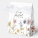 Estas adorables cajas de favor para su ducha de novia tienen un diseño ligero y aireado que es dulce y muy elegante. Con encanto bohemio, esta caja de favor está bordeada a lo largo del borde inferior en flores silvestres de acuarela con hermosos colores suaves de amarillo, rosa, azul y beige marfil. La plantilla de texto fácil de personalizar es limpia y moderna con un estilo encantador.