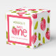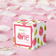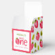Caja personalizada de favores de primer cumpleaños de fresa para bebé que se vuelve dulce. Fresas acuáticas, hojas y acentos florales blancos. Suministros de fiesta de primer cumpleaños de Berry.