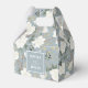 Este diseño de inspiración chinoiserie presenta elegantes flores botánicas, pájaros y vegetación en un blanco polvoriento y azul marfil. Personalice la caja de favores con sus detalles y, si desea reorganizar el estilo y la ubicación del texto, pulse el botón "Haga clic para más personalizares".