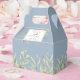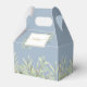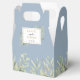 Elegante y suave vegetación deja una caja de favores matrimoniales con delicadas hojas de acuarela sobre un polvoriento fondo azul que enmarca tus nombres y fecha especial ambientada en tipografía moderna. La parte posterior tiene un mensaje de agradecimiento de guión dorado. ¡Una forma perfecta de agradecerles a sus huéspedes! Diseñado por Thisisnotme©