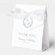 Gracias a estas magníficas cajas, con una hermosa corona azul polvorienta, romántica, botánica, las iniciales y nombres de la novia y del novio, así como la fecha de su boda, son perfectas para los favores en la recepción. Los tipos de letra son exquisitos y tradicionales. Es tan fácil hacer esto propio. Simplemente seleccione "Personalizar esta plantilla", escriba sus iniciales, primeros nombres y fecha de boda. ¡Es tan fácil!
