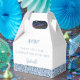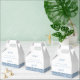 Una caja de favores de moda con polvorientos azules y malolientes purpurinas personalizados gracias a un elegante y moderno baño de bebé, ducha de novia, fiesta de cumpleaños, bat mitzvah, Quinceañera o boda. * * * * * Haga clic en PERSONALIZAR MÁS AÚN para cambiar fuentes, colores y disposición y crear una caja de favores completamente personalizado para su agradecimiento de invitado. * * * *
