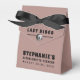 Última discoteca moderna retro soltero de fin de semana caja de favores en rosa polvoriento y negro con bola de disco.