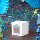 Esta hermosa huella de un ilustracion de pluma y acuarela de Helen McCartney Designs muestra un grupo de animales dulces apiñados juntos a bordo del Arca de Noé.