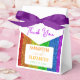 El arcoiris de la bandera LGBT enciende la caja de favores de una boda lesbiana. "¡Añade un toque de magia arco iris a tu día especial con estas cajas de favores inspiradas en la bandera LGBT! Estos brillantes diseños de arco iris traen alegría y celebración a todos los invitados. Llénales con dulces o pequeños recuerdos para agradecer a tus seres queridos por ser parte de tu viaje. Celebra el amor en todos sus colores con estos encantadores favores.