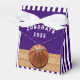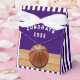 Creativos regalos de fiesta de noche de baloncesto con un fondo morado. Para personalizar el texto de edición al personalizar para el día del partido de baloncesto, la fiesta de cumpleaños, la Noche Senior u otro evento de temática deportiva.