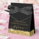 Elegante mini tienda estilo triángulo caja de favores con borde purpurina dorado amarillo y llovizna de confeti sobre un fondo negro con texto de agradecimiento personalizado, perfecto para un cumpleaños moderno y de moda, bat mitzvah, Quinceañera, ducha de novia, ducha de bebé o fiesta de soltera. Haga clic en PERSONALIZAR MÁS AÚN para cambiar los tipos de letra, los colores y el diseño para crear una divertida y única caja de favores personalizada para los invitados fiestas.