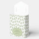 Esta caja de carpas muestra un elegante patrón de hojas verdes sabias sobre un fondo blanco. Un oval verde claro, en el frente, ofrece texto personalizado para un mensaje de agradecimiento personal y los nombres de la novia y el novio.