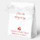 Dulce, elegante y lleno de encanto, este diseño de caja favorita de "She's the Cherry on Top" es perfecto para una divertida y femenina ducha de novias. Con un libreto rojo, el diseño cobra vida con un alegre par de cerezas en el centro. El color rojo sobre blanco le confiere un aspecto limpio y retro inspirado en la tendencia. Personalizar con el nombre de la novia, la fecha del evento o un breve mensaje de agradecimiento para crear un toque final memorable y adorable para los favores de tu fiesta.