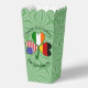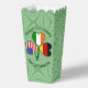 Diseño divertido en una caja de favores de palomitas, justo para un fiesta del Día de San Patricio o cuando quiera celebrar sus herencias, culturas y ancestros norteamericanos, irlandeses y armenios. Shamrock cuenta con una bandera en cada hoja: Armenia, Estados Unidos de América e Irlanda. Arriba se pueden leer TRES CULTURAS, debajo se lee ONE YOURNAME. Agregue su nombre en el lugar correcto para personalizar su evento. Añade el nombre de otra persona para un regalo especial de favor del partido. Diseñar zapatos delante y detrás de la caja de favores de palomitas.