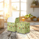 Té y té de miel con fondo de oliva verde con tetera decorativa y otros ilustraciones.