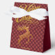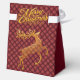 Elegant Burgundy & Gold Reindeer Christmas Favor Box – Luxury Holiday Gift Box with Ornate Script, Bedazzled Pattern & Personalized Family Name