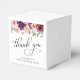 Elegant and chic thank you favor boxes for your 50th birthday party featuring "thank you" showcased in a chic calligraphy script and watercolor bouquets of burgundy red and blush pink florals with sage greenery. Personalize with your name.