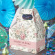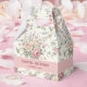 A wedding favor box featuring featuring pastel rose bouquets and a shabby chic design.