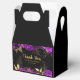 Pretty birthday favor box with purple flowers and gold foliage. The words can be changed to suit your own details or requirements. Would be perfect for a birthday party.