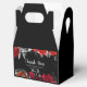 Pretty birthday favor box with red flowers and silver foliage. The words can be changed to suit your own details or requirements. Would be perfect for a sweet sixteen birthday party.