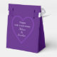 Esta caja de favores es moderna y romántica, con corazones elegantes y letras sofisticadas.