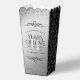 ¡Celebren su undécimo aniversario de bodas de acero (y una historia de amor digna de película) con estas elegantes cajas de favores de estilo palomitas! Las elegantes letras grabadas en rombo, los fondos de acero gastado bordeados por paneles negros trenzados en diamante añaden un toque memorable a esta ocasión especial y un hito. Personaliza con los nombres de la pareja, fechas de matrimonio y mensajes. Diseño © W.H. Sim. Ver más en zazzle.com/expressionsoccasions