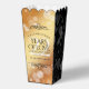 ¡Celebren su vigésimo segundo aniversario de boda de cobre (y una historia de amor digna de una película) con estas elegantes cajas de favores al estilo de palomitas! Las elegantes letras con confeti hexagonal en un Relieve metalizado de cobre simulado bordeado por paneles negros añaden un toque memorable para esta ocasión especial y un hito extraordinario. Personaliza con los nombres de la pareja, fechas de matrimonio y mensajes. Diseño © W.H. Sim. Ver más en zazzle.com/expressionsoccasions