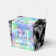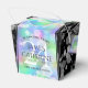 ¡Celebren su 24º aniversario del boda opal con estos elegantes favores! Las elegantes letras con confeti hexagonal en un fondo opal irrisorio bordeado por barras negras añaden un toque memorable para esta ocasión especial y un hito extraordinario. El panel inverso muestra un diseño idéntico. Personalizar con los nombres de la pareja, fechas de matrimonio y mensajes. Diseño © W.H. Sim. Ver más en zazzle.com/expressionsoccasions