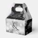 ¡Celebremos el 25 aniversario del boda con estas cajas conmemorativas de favores! Las elegantes letras en blanco y negro con confeti hexagonal en Relieve metalizado plateado alterno y fondo negro añaden un toque memorable a esta ocasión especial y un hito extraordinario. Personalizar con los nombres de la pareja feliz, años de matrimonio y mensajes de felicitación personalizados por su aniversario de plata. Diseño © W.H. Sim. Ver más en zazzle.com/expressionsoccasions