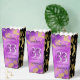 ¡Celebren su 33 aniversario de boda de amatista (y una historia de amor digna de una película) con estas elegantes cajas de favores al estilo de palomitas! Las elegantes letras con un confetti hexagonal con polvo de oro sobre un fondo amatista violeta rodeado de paneles negros le dan un toque memorable a esta ocasión especial y un hito extraordinario. Personaliza con los nombres de la pareja, fechas de matrimonio y mensajes. Diseño © W.H. Sim. Ver más en zazzle.com/expressionsoccasions