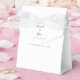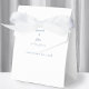 Los delicados detalles de la boda y los regalos para los invitados presentan los nombres de la novia y el novio y la fecha de la boda en un azul polvoriento de moda sobre un fondo blanco chic en la parte delantera, encima y debajo de la solapa decorativa. Dos florituras decorativas delicadas, cada una conteniendo un solo corazón, envuelven delicadamente los nombres de la pareja recién casada. ¡Personalice nuestra plantilla fácil de usar con los detalles de su boda! El otro lado presenta un mensaje de agradecimiento coordinado para sus invitados que puede mantenerse tal como está o personalizarse con la plantilla fácil de usar. ¡Perfecto para agregar ese toque especial en sus celebraciones especiales, boda, aniversario o eventos de compromiso! Asegúrese de ver el enlace de la colección en esta página para ver todos los artículos que coinciden con este diseño. Por favor, dirija sus preguntas o solicitudes de color personalizado a invitationsuites@gmail.com o envíe un