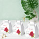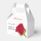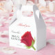 Caja de Favores de Baby Shower Elegante con rosa roja en acuarela. Es muy fácil de personalizar, con detalles de tus datos personales.