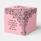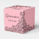 Las cajas favoritas de 2" x 2" x 2" presentan un elegante diseño de encaje de remolinos negros, flores y hojas en un fondo rosado, tu nombre en la parte superior, Quinceañera en la parte delantera y un mensaje de agradecimiento personal en la parte posterior. Cambie las fuentes, los colores de las fuentes, la redacción e incluso el color de fondo. Invitaciones que coincidan y más en nuestra tienda —> http://bit.ly/2JGREwA <—