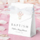 Elegante y personalizada Caja de Favor del Baptismo de la Cruz Floral Rosa