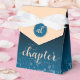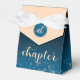 Haga de su día especial una celebración inolvidable con esta elegante caja de favores, que cuenta con elegantes letras escritas a mano y en bloques con una ducha de confeti sobre telas de color negro a oceánico de color azul evocador de los fondos mediterráneos y melocotón. Personalizar como se desee. Diseño © W.H. Sim. Ver más en zazzle.com/expressionsoccasions