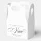 Esta caja de favores de boda caligrafía hará la adición perfecta a tus favores para celebrar una elegante boda. El tipo de letra del guión añade un toque de sofisticación, mientras que el diseño moderno lo mantiene fresco y elegante. Es la manera perfecta de celebrar con sus seres queridos y su día especial.