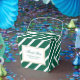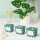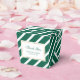 Cajas de personalizado esmeralda verde, blanco y dorado con un gramo de oro sobre un fondo de rayas verde esmeralda y blanco. Estas cajas de agradecimiento personalizadas se pueden personalizar para otras ocasiones.