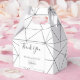 Este diseño presenta un elegante diseño geométrico en blanco y negro. El fondo del patrón geométrico crea el fondo perfecto para los detalles del boda. La combinación de los colores blanco y negro crea un estilo sofisticado, moderno y de moda. Elegante diseño de caja de favores de boda con elementos modernos. La decoración moderna de la tipografía le da un estilo distinto. También hay disponibles invitaciones de boda coincidentes y otros artículos de papelería.