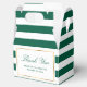 Personalice fácilmente estas cajas de favores de boda a rayas verdes esmeraldas con los detalles de su boda. Estas cajas de agradecimiento personalizadas se pueden personalizar para otras ocasiones, como cumpleaños, novias o duchas para bebés.