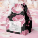 Este diseño presenta elegantes rosas rosas rosas. Con un fondo negro en combinación con las flores rosadas de época. Capa opaca blanca, borde blanco y texto sencillo crean un estilo sofisticado y elegante. Este diseño es ideal para cualquier tema boda. El diseño perfecto de la caja de favores de boda para todas las temporadas. También hay disponibles invitaciones de boda coincidentes y otros artículos de papelería.