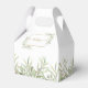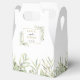 Elegante y suave vegetación deja la caja de favores matrimoniales con delicadas hojas de acuarela enmarcando sus nombres y fecha especial establecida en la tipografía moderna. La parte posterior tiene un mensaje de agradecimiento de guión dorado. ¡Una forma perfecta de agradecerles a sus huéspedes! Diseñado por Thisisnotme©