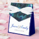 Bellas cajas de favores de boda reales azul pavo real. Puede personalizar esta elegante caja de favores de boda real y azul verde azulado con el texto en el estilo de letra que desee, agregar un color de fondo y cambiar el color de la cinta.