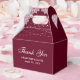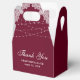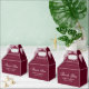 Ponga sus regalos de boda dentro de estas elegantes cajas rústicas de personalizado borgoñona de bienvenida con encaje floral blanco y luces de hadas. Personaliza fácilmente estas cajas de favores de bodas con tus detalles de boda. Nuestras elegantes cajas de favores para bodas en burdeos son perfectas para su romántico fiesta de bodas rústico y burdeos. Estas cajas de agradecimiento personalizadas se pueden personalizar para otras ocasiones, como duchas de novias o de bebés.