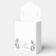Un sencillo y elegante guión de caligrafía verde con dos hojas de eucalipto de color agua a ambos lados de la parte inferior para decorar esta hermosa y minimalista caja de favores Will You Be My Bridesmaid. Agradable diseño moderno de boda para una fiesta nupcial.